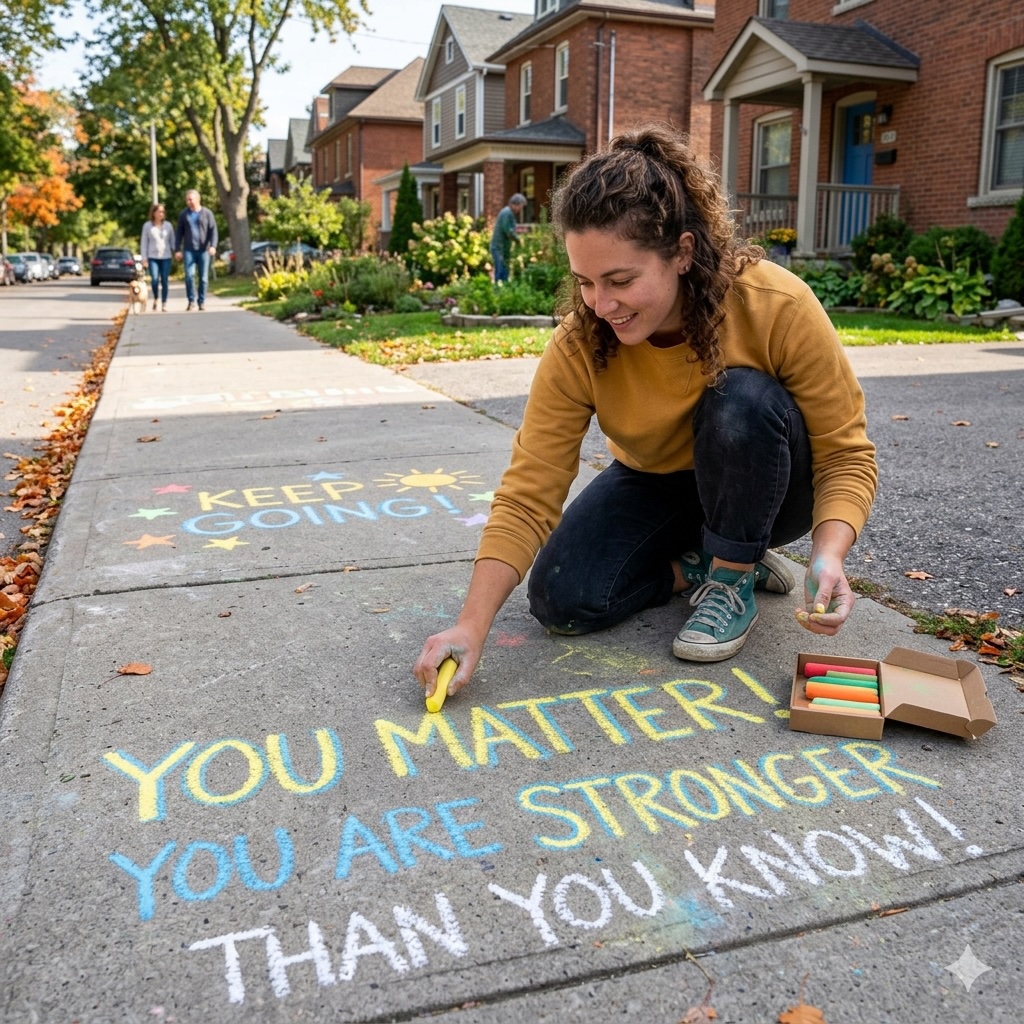Write encouraging messages on your neighborhood sidewalks